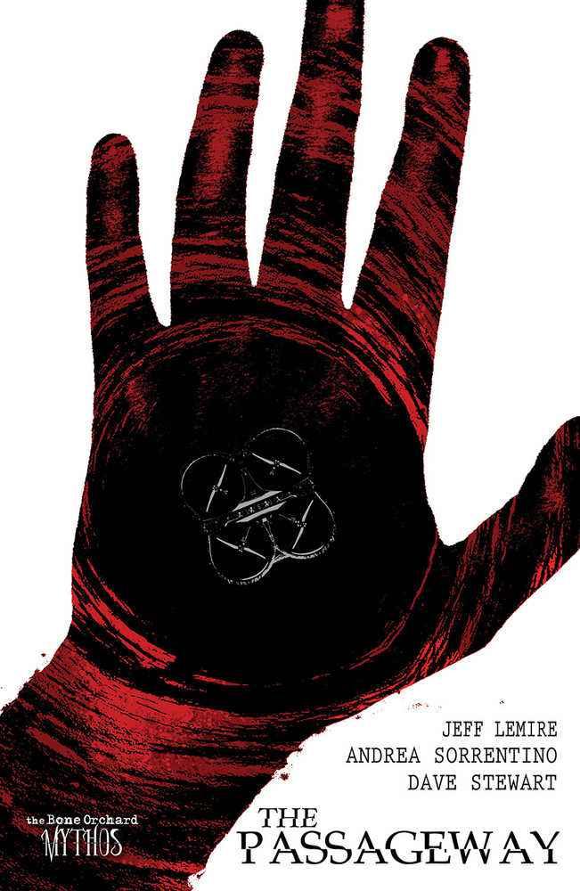 From the creative team of GIDEON FALLS and PRIMORDIAL comes the first book in a bold and ambitious new shared horror universe! When a geologist is sent to a remote lighthouse to investigate strange phenomenon he finds a seemingly endless pit in the rocks. But what lurks within and how will he escape its pull?. THE PASSAGEWAY is the first of a dozen new interconnected projects making up THE BONE ORCHARD MYTHOS from LEMIRE and SORRENTINO!. The Bone Orchard Mythos is an ambitious expansion for the powerhouse creative team and will span multiple books and across a variety of different storytelling formats. Each title will tell its own unique, self-contained tale some as stand-alone hardcover graphic novels, some as miniseries comics, and some as longer format maxiseries comics but they will all be set within the same world and add to the overall Bone Orchard mythology.The team plans to release at least two new titles each year, for the next several years. In Summer 2022 the horrors begin with a hardcover graphic novel titled, The Passageway which follows a geologist sent to a remote lighthouse to investigate a strange phenomenon. In 2023 Lemire and Sorrentino will follow up with a miniseries collection titled, Ten Thousand Black Feathers, and then another original graphic novel hardcover in 2023 titled Tenement.