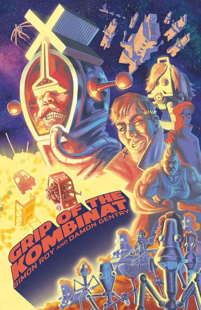 Two megacorporations wage an eternal tug-of-war for the ruins of our future solar system. Pulpy sci-fi adventure, escalating unintended consequences, wry satire, and pure goofery combine in seven potent chapters of comics entertainment to make GRIP OF THE KOMBINAT, an unholy lovechild of Verhoeven and Asimov. A original graphic novel from the deranged minds of comics wündérk ñdêr SIMON ROY (PROPHET, HABITAT, FIRST KNIFE) & DAMON GENTRY (Sabertooth Swordsman, Vinegar Teeth).