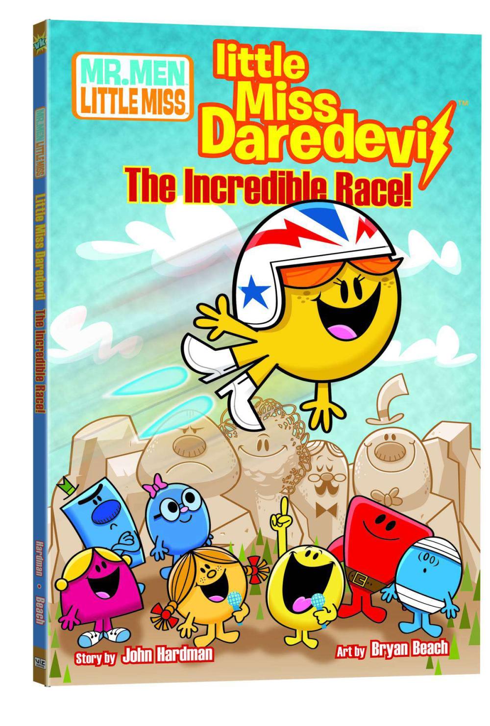 By John Hardman 'Woo-Hoo! Little Miss Daredevil is competing in the Incredible Race, and she’s in it to win it! Whether scaling to the top of Mount Dillydale or taking a wrong turn and rocketing into outer space, no thrill’s too thrilling for Little Miss D!'