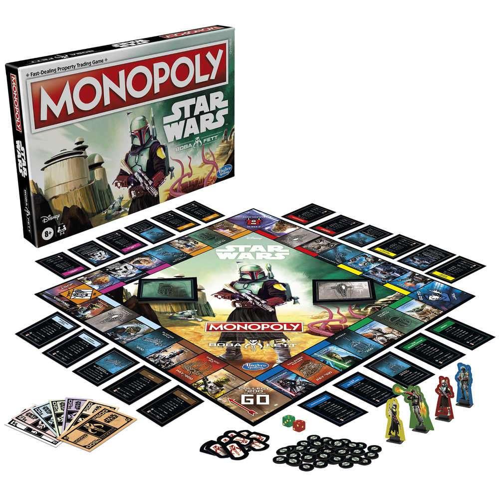 Celebrate the legendary Bounty Hunter and the galaxy of characters he has encountered, with this Monopoly: Star Wars Boba Fett edition board game. Star Wars fans will love the gameboard spaces that depict iconic Star Wars characters, and the cardboard Boba Fett tokens showing him in a classic pose or one of his more recent looks. Players move around the board collecting characters, equipment, and Imperial Forces, and relive favorite Boba Fett moments from Episodes V and VI of the Star Wars movies, as well as action-packed scenes from The Mandalorian TV series. The Monopoly game is for 2-4 players, ages 8 and up.