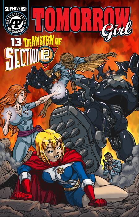 Giant robots are running amok, proving to be too much for even Tomorrow Girl to handle. She is met by a group of strange new heroes called Section 12. But are they allies or enemies? Plus Part 3 of "The Origin of Tractor Lad" by Dan Collins!